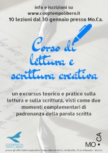 Sito Web: http://www.cooptempolibero.it/2018/01/04/corso-lettura-scrittura-creativa/